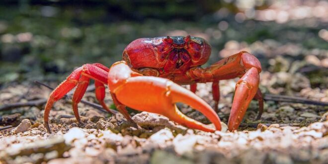 L’île Christmas, territoire australien au large de Java, est le paradis des crabes. Ces crustacés, qui se comptent par millions, ne limitent pas leur terrain de jeu aux plages : on en rencontre dans les sous-bois, sur les parcours de golf, dans les grottes et jusque dans les maisons.