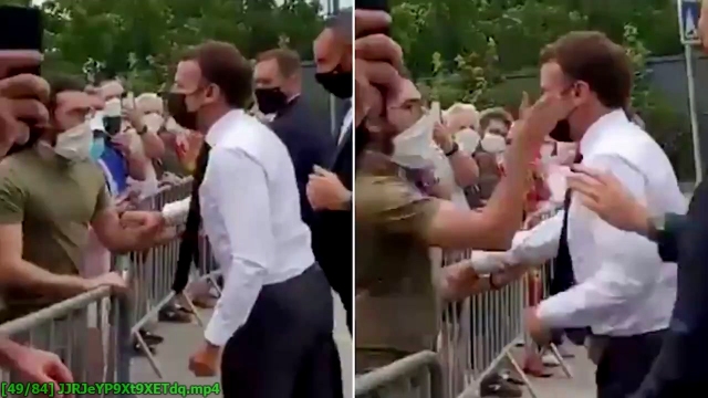 France President Emmanuel Macron slapped in the face by protester in public